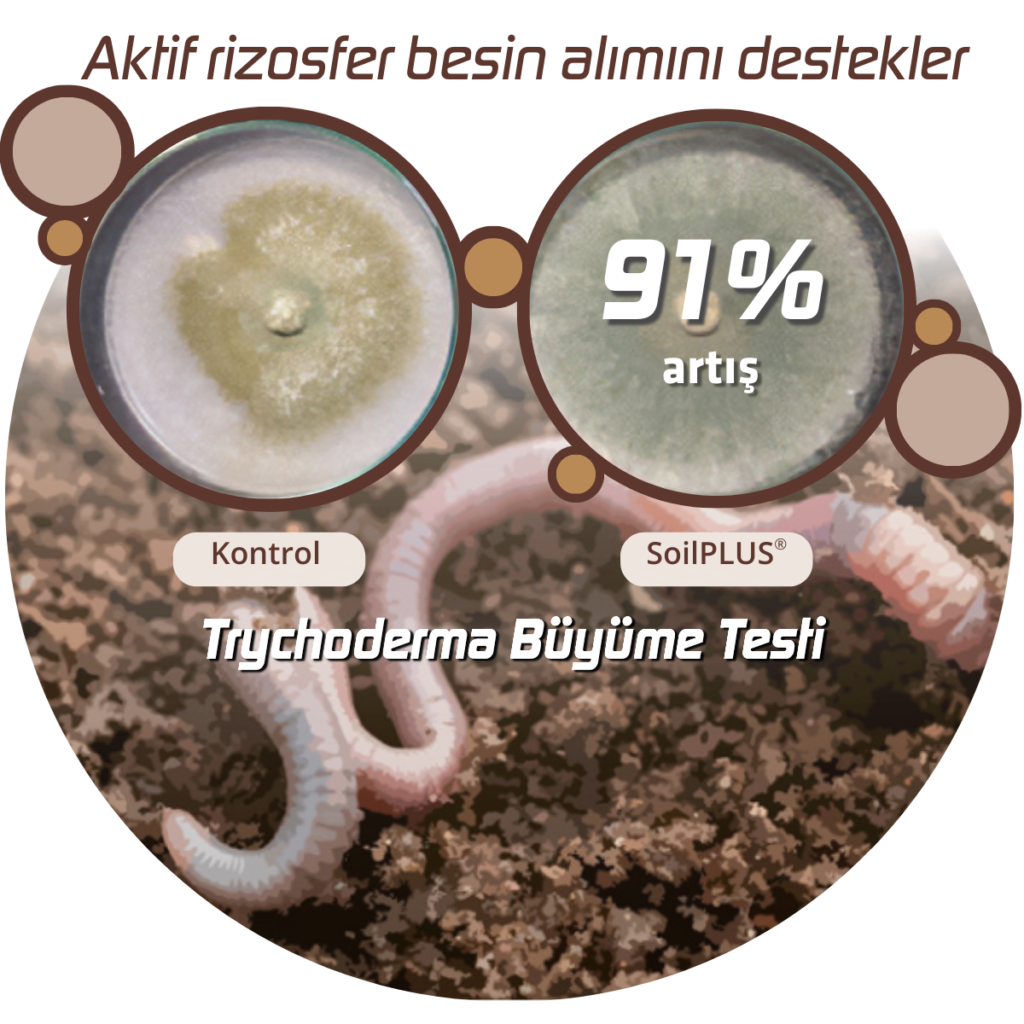 Bu mantar organik maddeleri ayrıştırır, besin maddelerini serbest bırakır ve kökleri zararlı mantarlardan korur. Bu sayede Trichoderma, güçlü büyümeyi ve dayanıklı bitkileri destekler.